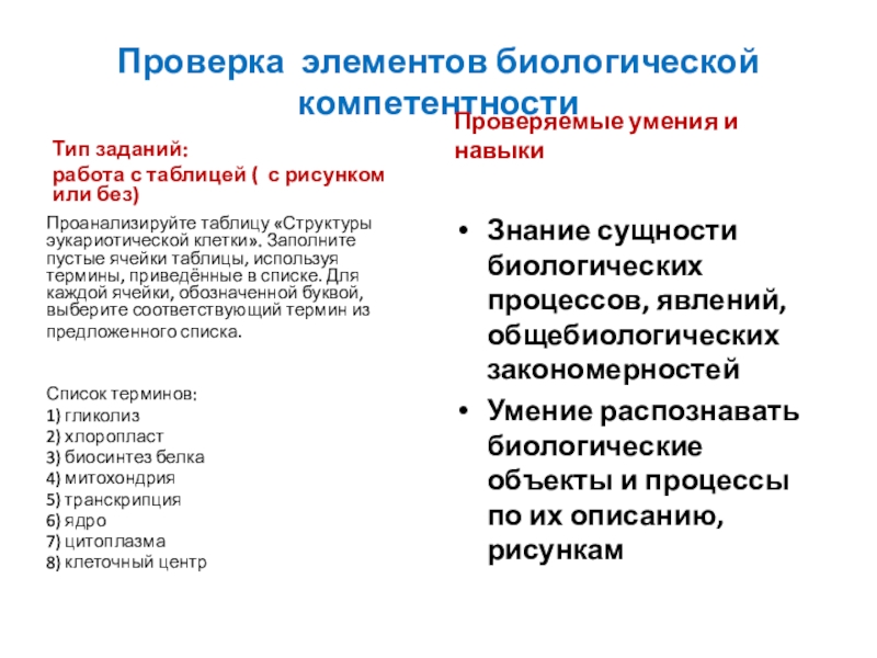 Умение распознавать биологические объекты и процессы по их описанию, рисункам