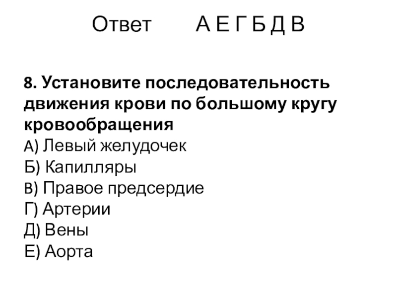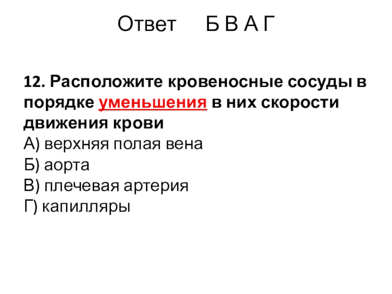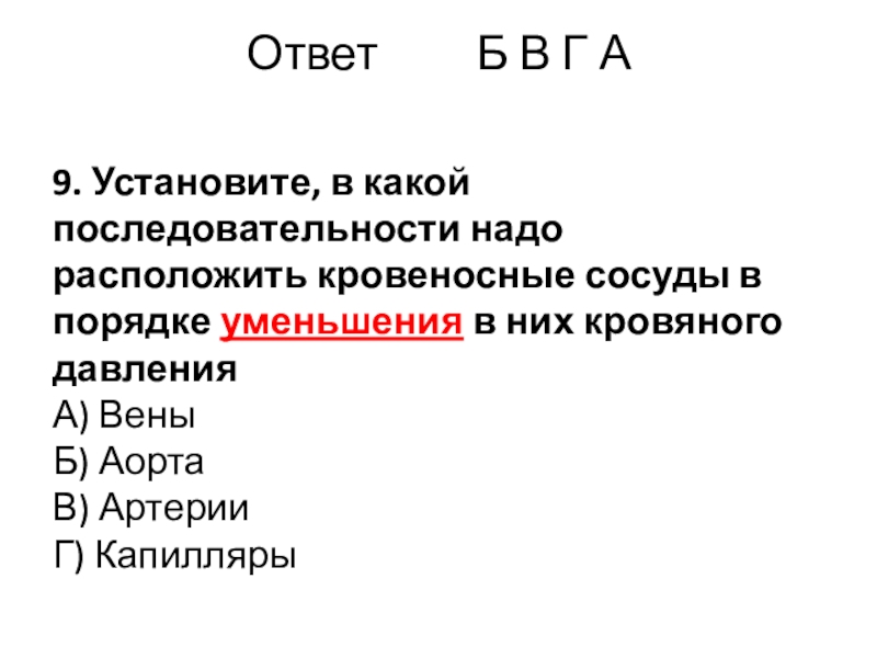 какой последовательности надо расположить кровеносные сосуды в порядке уменьшения в них кровяного давления