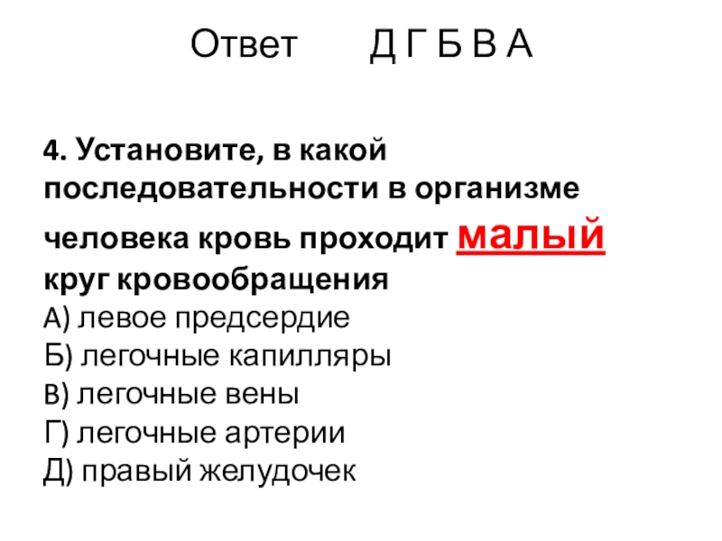 какой последовательности в организме человека кровь проходит малый круг кровообращения