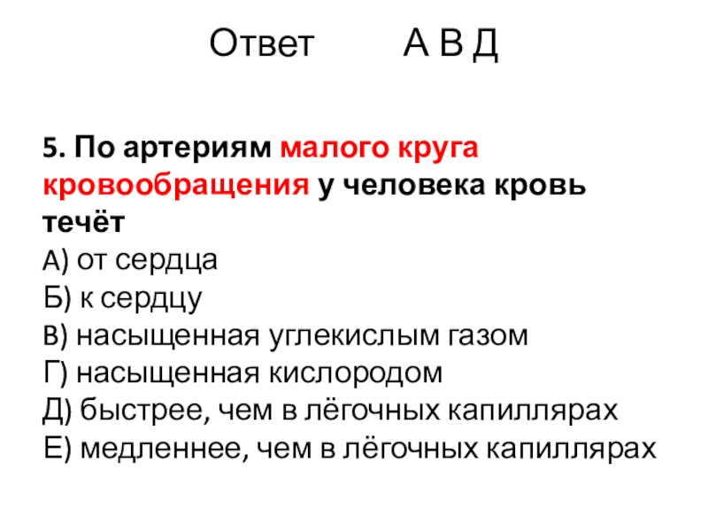 Е) под небольшим давлением поступает в малый круг кровообращения