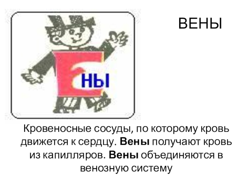 Кровеносные сосуды, по которому кровь движется к сердцу. Вены получают кровь из капилляров. Вены объединяются