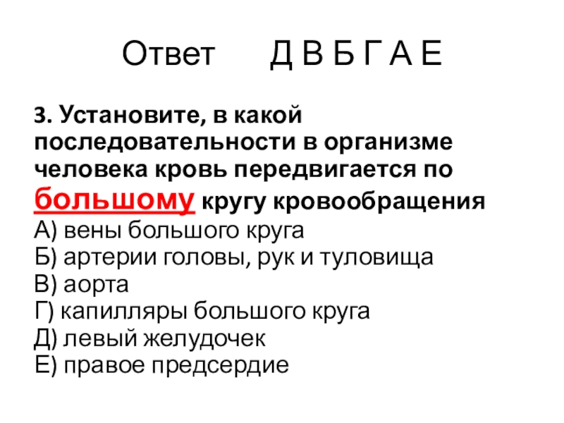 в какой последовательности в организме человека кровь передвигается по большому кругу кровообращения