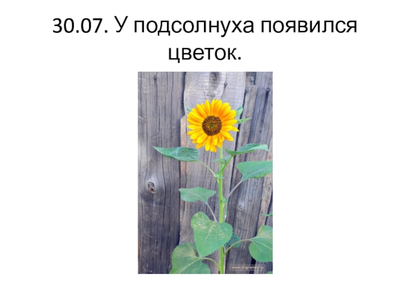 Слайд 530.07. У подсолнуха появился цветок.