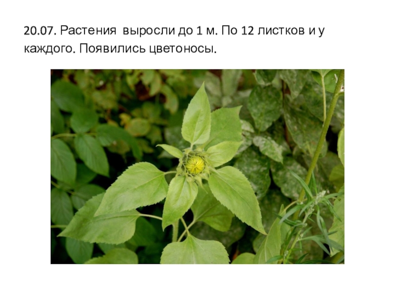Слайд 420.07. Растения выросли до 1 м. По 12 листков и у
