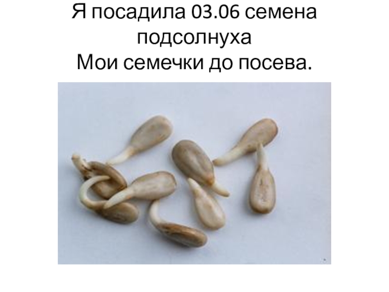 Слайд 2Я посадила 03.06 семена подсолнуха Мои семечки до посева.