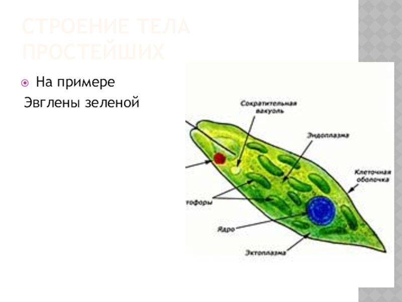 Строение тела простейшихНа примереЭвглены зеленой