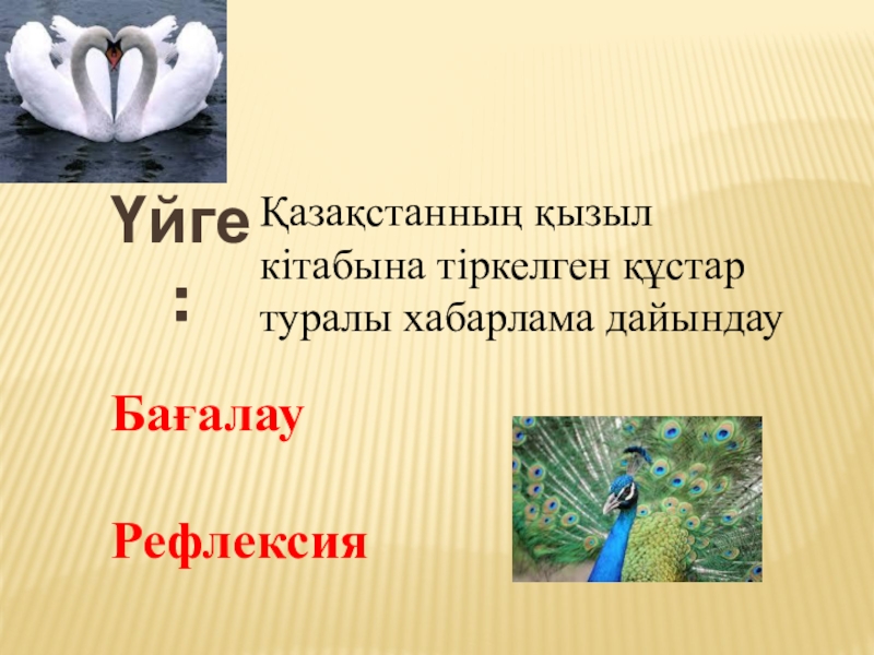 Үйге:Қазақстанның қызыл кітабына тіркелген құстар туралы хабарлама дайындауБағалау Рефлексия