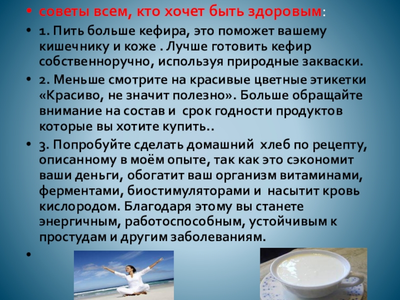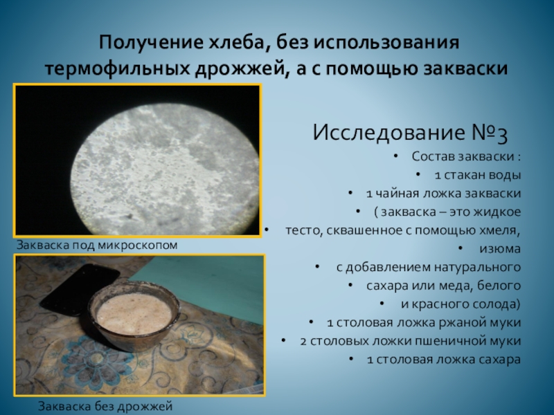 2.Доказать, возможность приготовления домашнего хлеба и кефира с помощью закваски, без использования термофильных дрожжей,