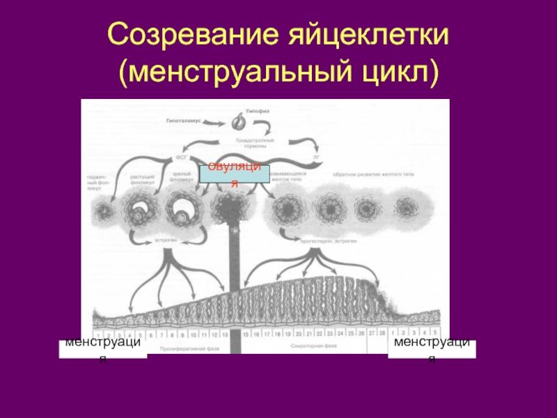 Слайд 9Созревание яйцеклетки (менструальный цикл)