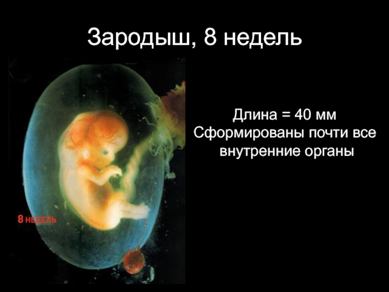 Зародыш, 8 недельДлина = 40 ммСформированы почти все внутренние органы