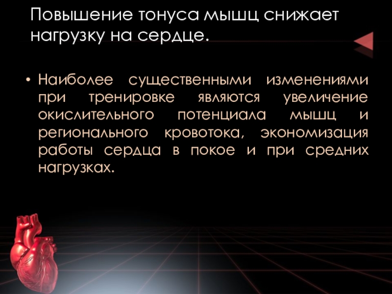 Повышение тонуса мышц снижает нагрузку на сердце.