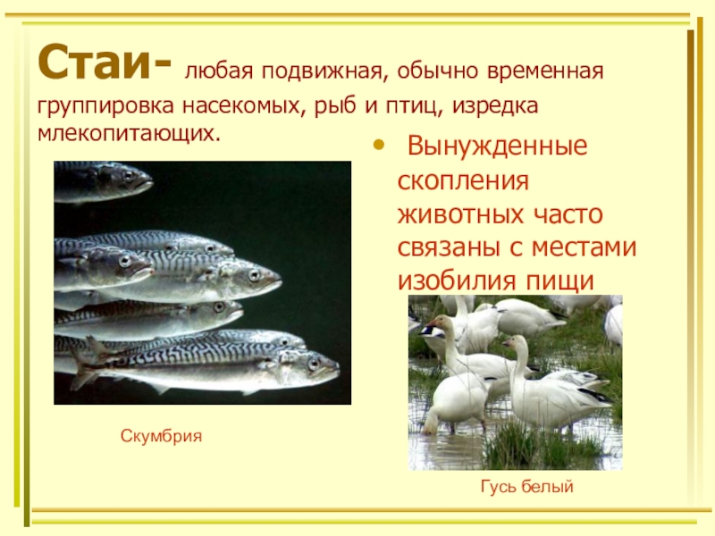 Вынужденные скопления животных часто связаны с местами изобилия пищи