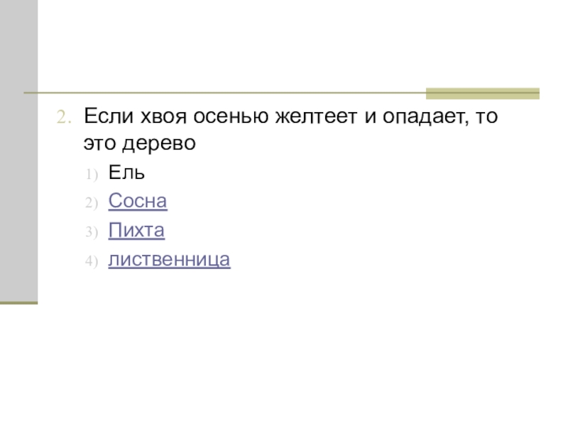 Слайд 5Если хвоя осенью желтеет и опадает, то это дерево