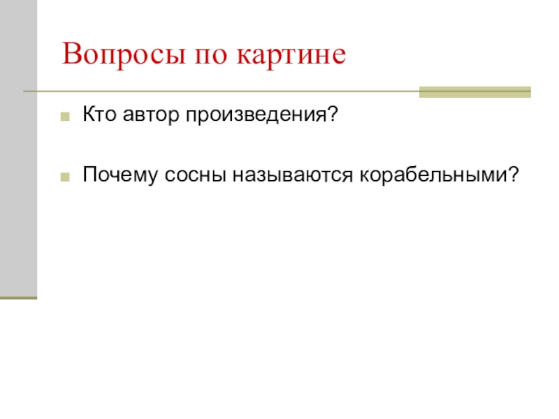 Вопросы по картинеКто автор произведения?Почему сосны называются корабельными?