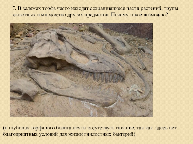 (в глубинах торфяного болота почти отсутствует гниение, так как здесь нет благоприятных условий для жизни гнилостных бактерий).