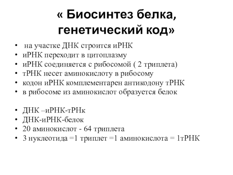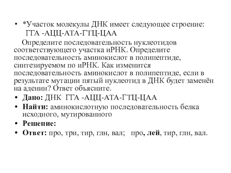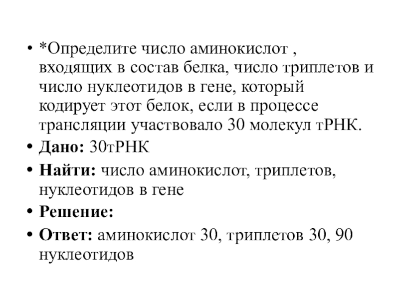 Слайд 20*Определите число аминокислот , входящих в состав белка, число триплетов и