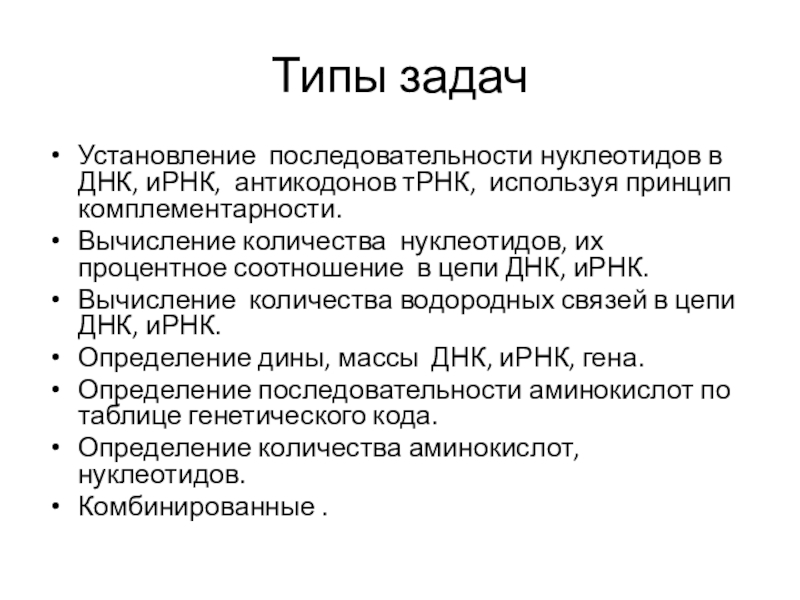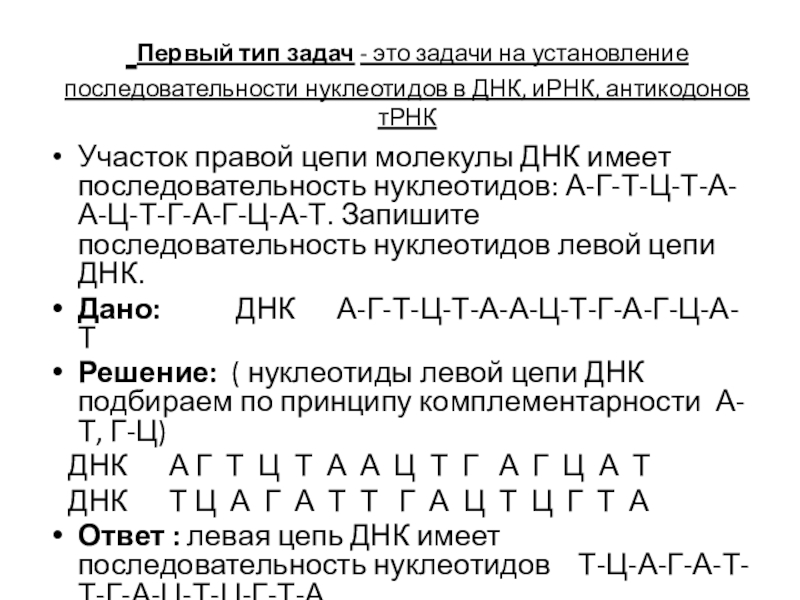 Слайд 6 Первый тип задач - это задачи на установление последовательности нуклеотидов