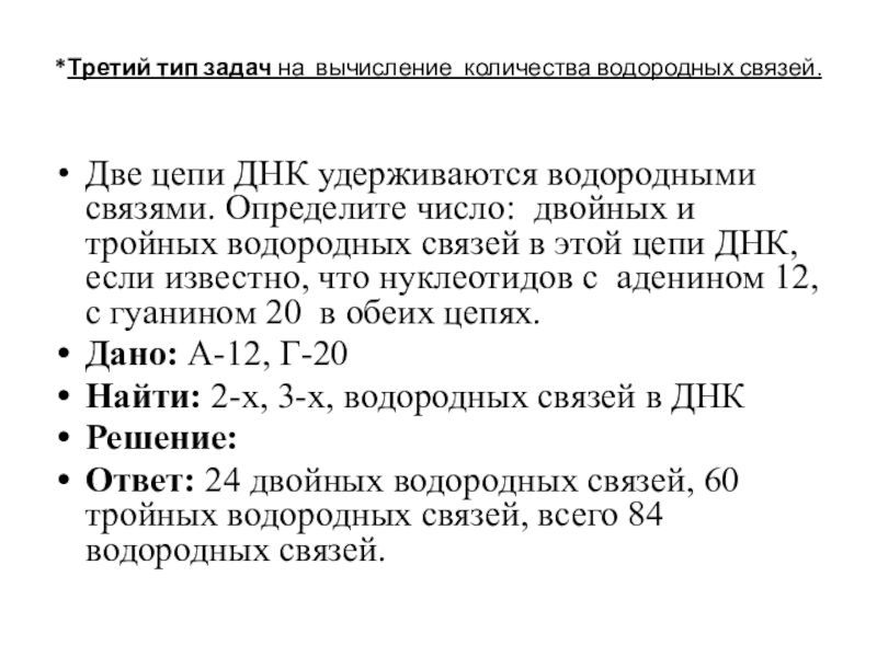 Слайд 12*Третий тип задач на вычисление количества водородных связей.