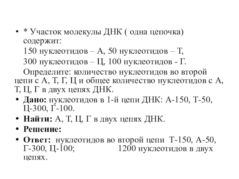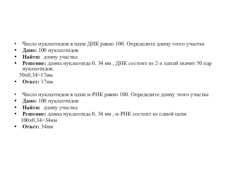 Слайд 13*Четвертый тип задач определение длины, ДНК, иРНК
