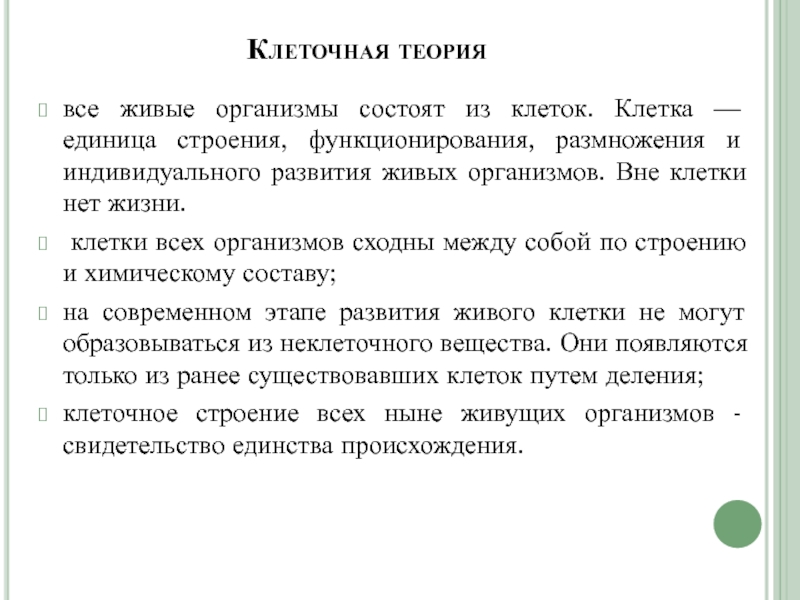 функционирования, размножения и индивидуального развития живых организмов. Вне клетки нет жизни.