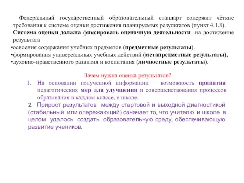 2. Прирост результатов между стартовой и выходной диагностикой (стабильный или опережающий) означает то, что учителю и школе в целом удалось создать образовательную среду, обеспечивающую развитие учеников.