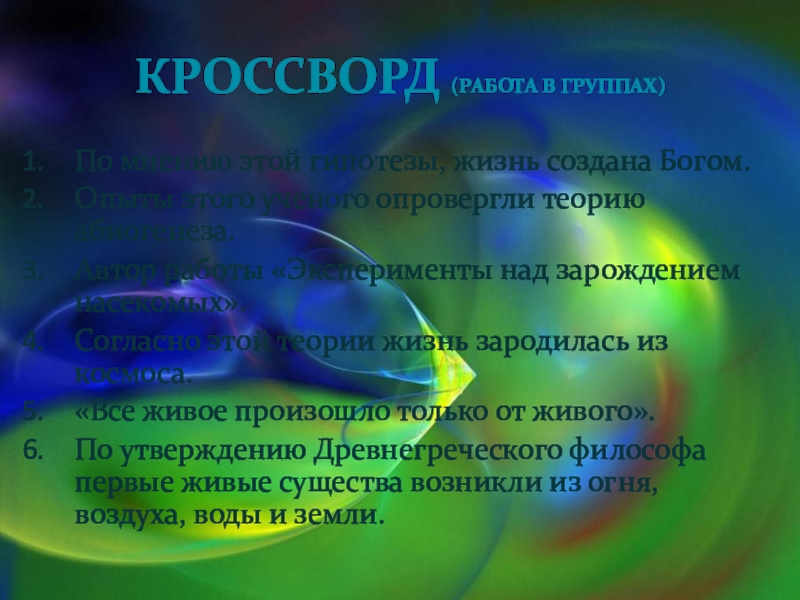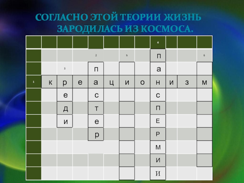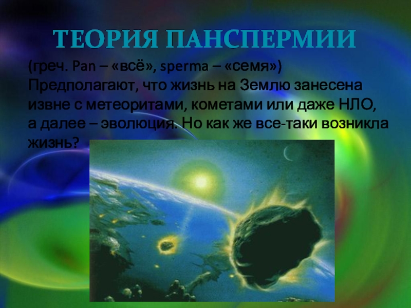 4. теория панспермии (жизнь на нашу планету занесена из Вселенной).