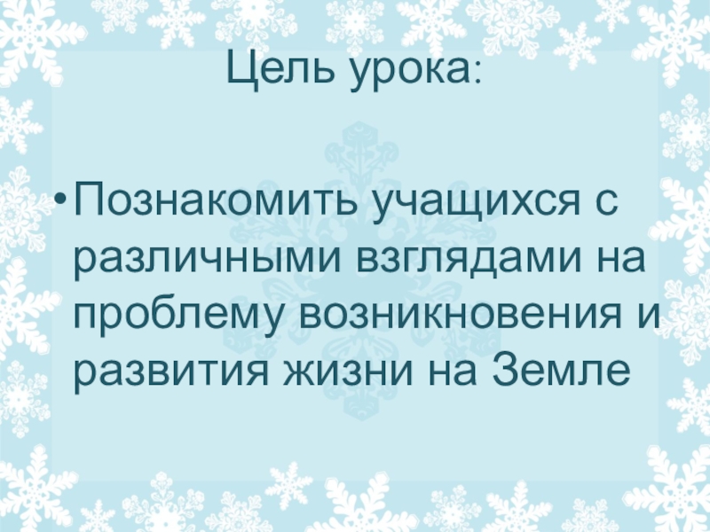 Познакомить учащихся с различными взглядами на проблему возникновения и развития