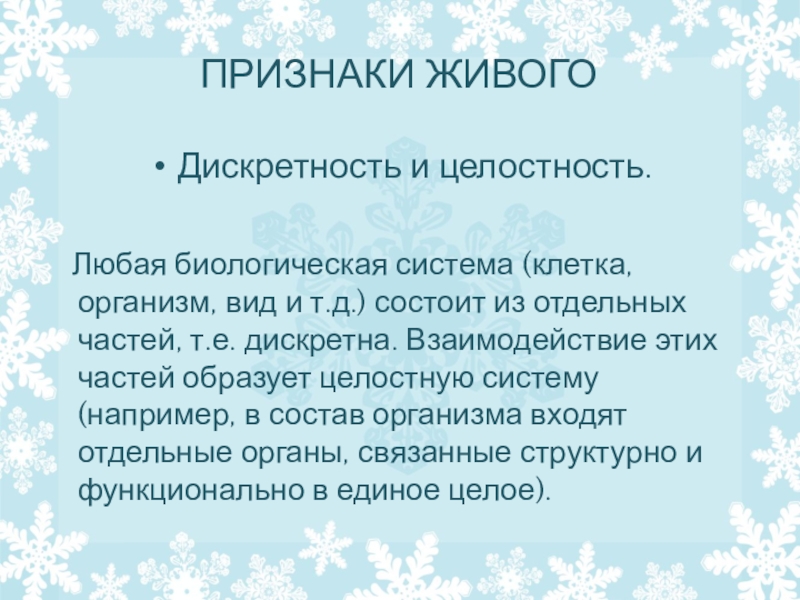 Слайд 13ПРИЗНАКИ ЖИВОГО