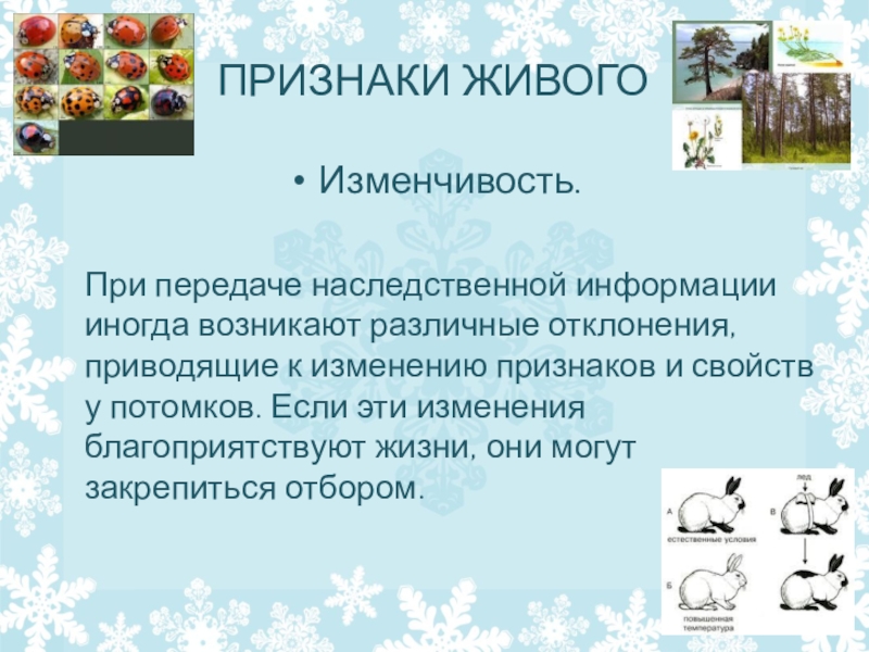 Слайд 12ПРИЗНАКИ ЖИВОГО