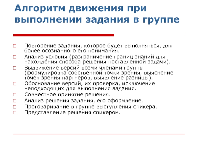 Слайд 10Алгоритм движения при выполнении задания в группе