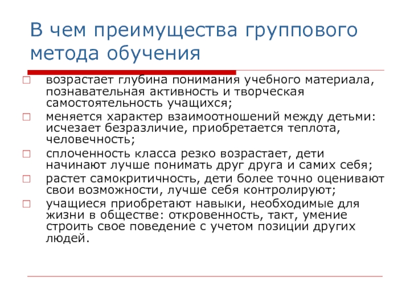 Слайд 4В чем преимущества группового метода обучения