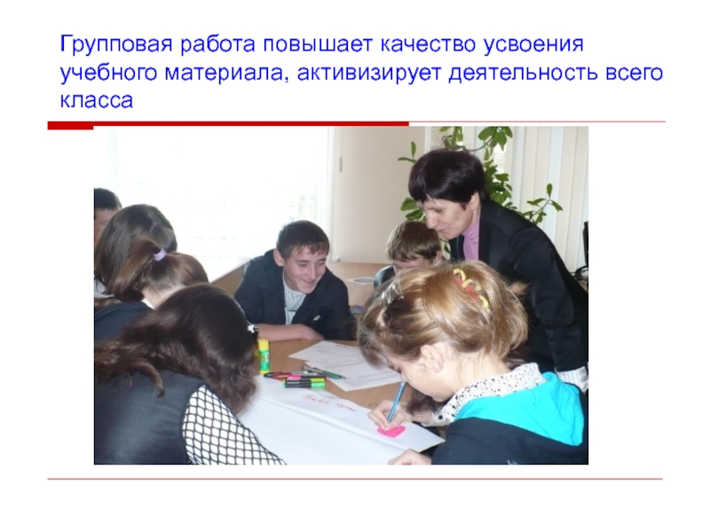 Групповая работа повышает качество усвоения учебного материала, активизирует деятельность