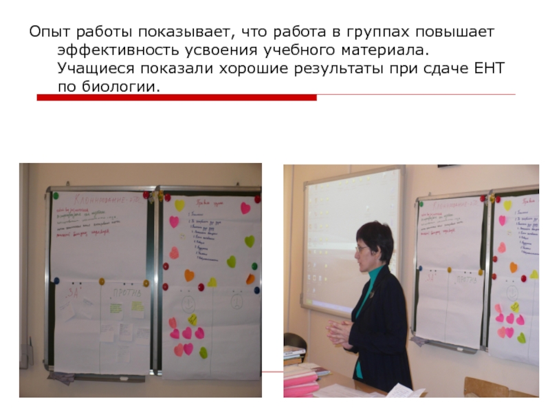 Слайд 12Опыт работы показывает, что работа в группах повышает эффективность усвоения учебного