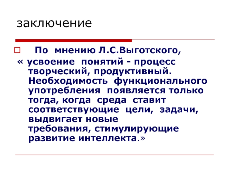 « усвоение понятий - процесс творческий, продуктивный.