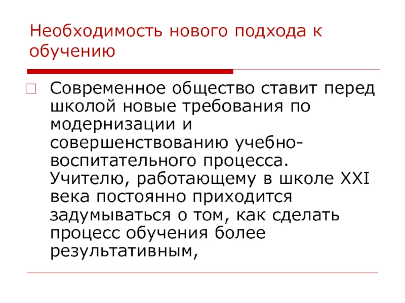 Слайд 3Необходимость нового подхода к обучению
