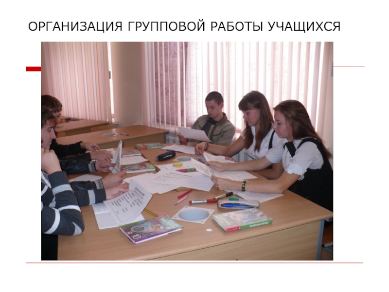 Слайд 7ОРГАНИЗАЦИЯ ГРУППОВОЙ РАБОТЫ УЧАЩИХСЯ