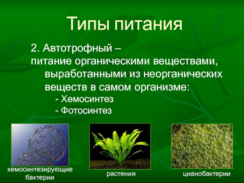 Относится к автотрофному типу питания.