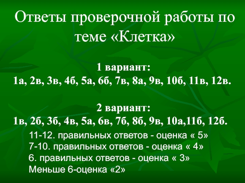 11-12. правильных ответов - оценка « 5»