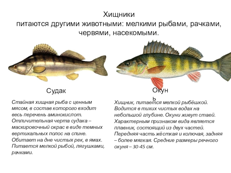 Щука исключительный мясоед. насекомыми. Охотится на мальков других видов рыб окуня, плотву, карася, Щурята растут очень быстро, уже через год достигают размера 15 сантиметров и массы 150 грамм, а на третий год жизни 42 см и веса 600-700 грамм.