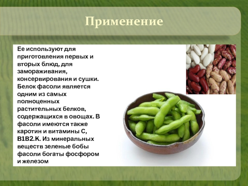 Презентация, доклад на тему Презенатции по биологии на тему Значение бобовых. Фасоль овощная (6 класс)