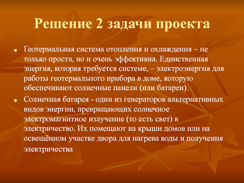 проста, но и очень эффективна. Единственная энергия, которая требуется системе, – электроэнергия для работы геотермального прибора в доме, которую обеспечивают солнечные панели (или батареи).