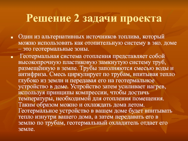 как отопительную систему в эко. доме – это геотермальные зоны.