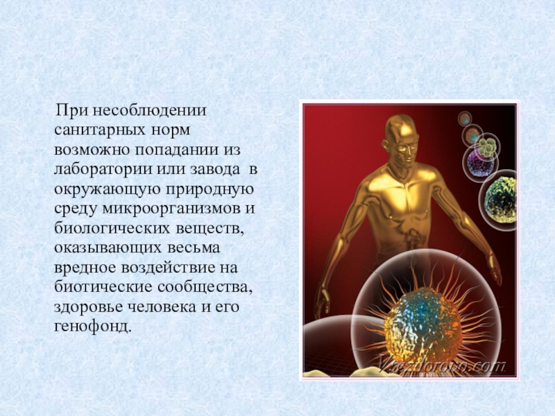 Слайд 11 При несоблюдении санитарных норм возможно попадании из лаборатории