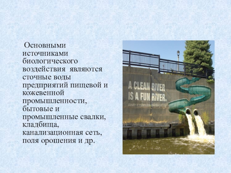 Слайд 3 Основными источниками биологического воздействия являются сточные воды предприятий