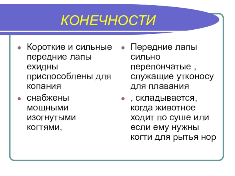 Передние лапы сильно перепончатые , служащие утконосу для плавания