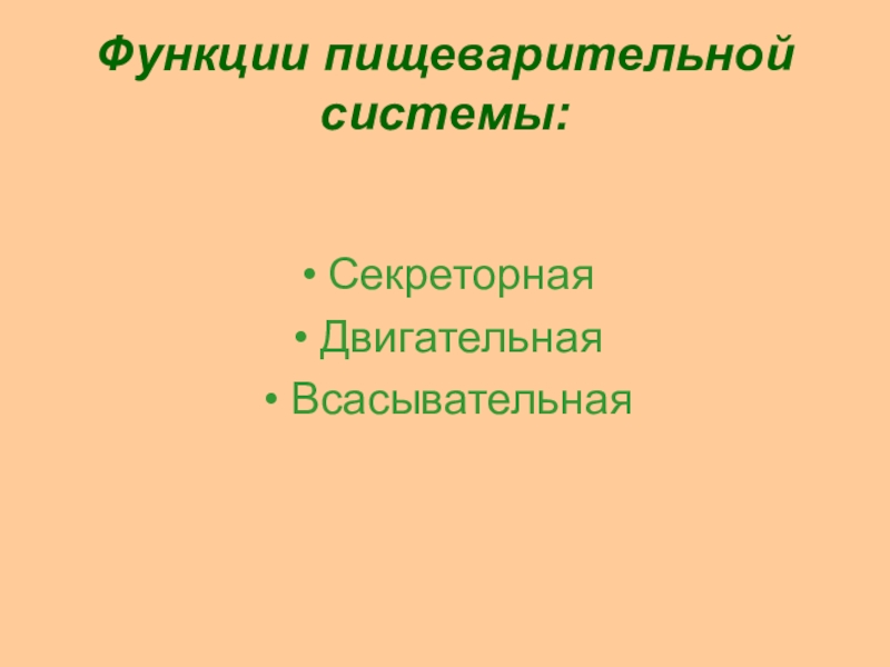 Функции пищеварительной  системы:СекреторнаяДвигательнаяВсасывательная