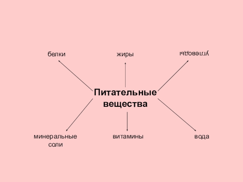 Питательные веществабелкижирыуглеводыминеральные соливитаминывода