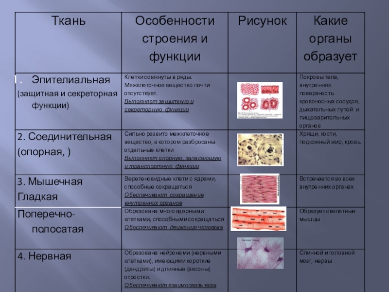 Вывод: каждая ткань имеет определенные особенности, которые обеспечивают её функции.