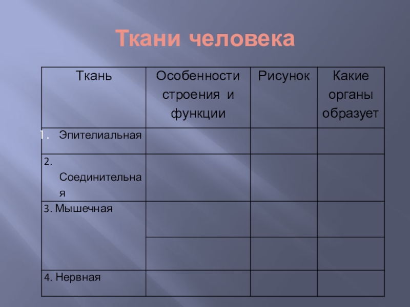 Слайд 1ТКАНИ И ОРГАНЫ ЧЕЛОВЕКА