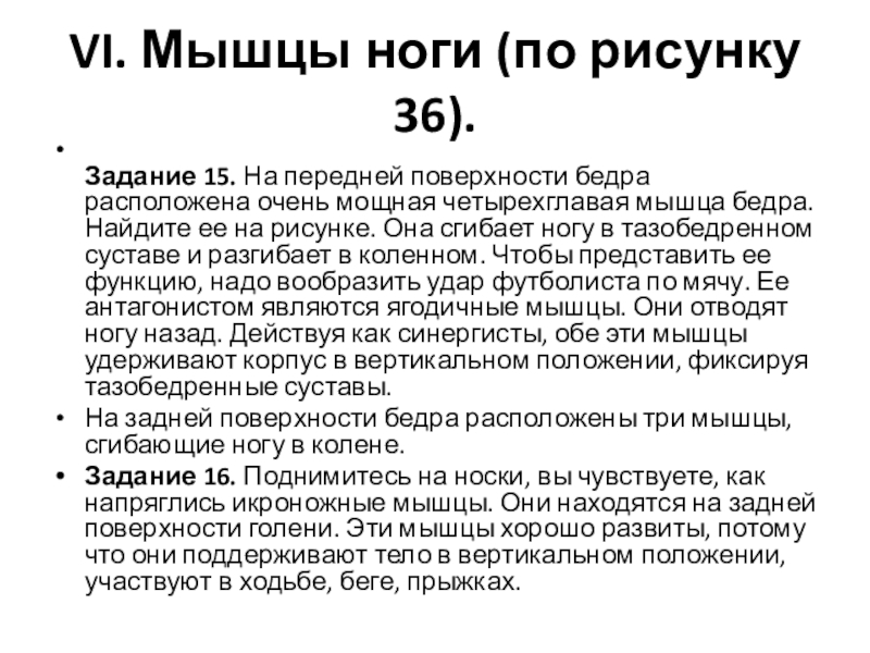 Слайд 11VI. Мышцы ноги (по рисунку 36).